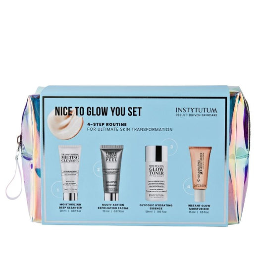 Reise Set mit Reinigungsbalsam, Toner, Peeling, Anti-Aging-Creme